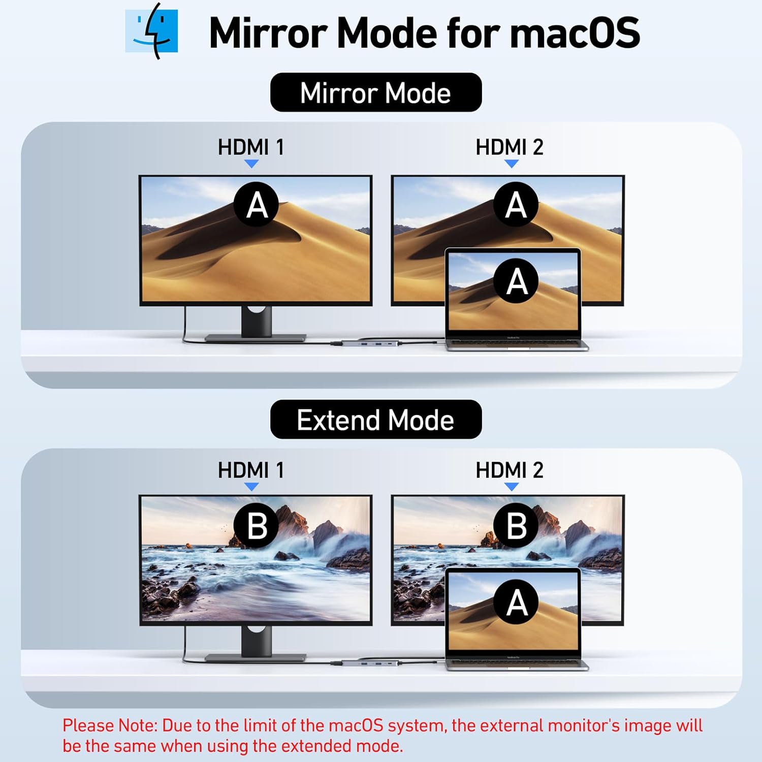 In addition to the dual HDMI ports, this adapter also includes PD charging, SD/TF card slots, USB A&C 3.0 ports, and more. This means you can connect all of your essential devices and peripherals with ease, while also keeping your laptop charged and ready to go.